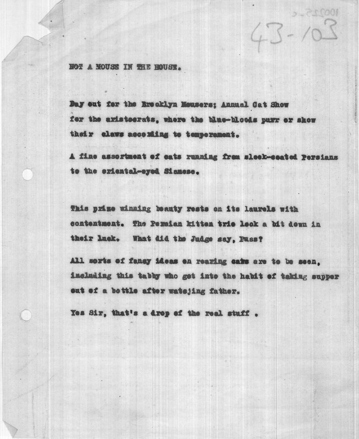 Commentary, 'Not a Mouse in the House', Pathe Gazette Issue No. 43/103, 27 Dec 1943. https://learningonscreen.ac.uk/newsonscreen/search/index.php/document/100225_commentary (Accessed 29 Dec 2025)