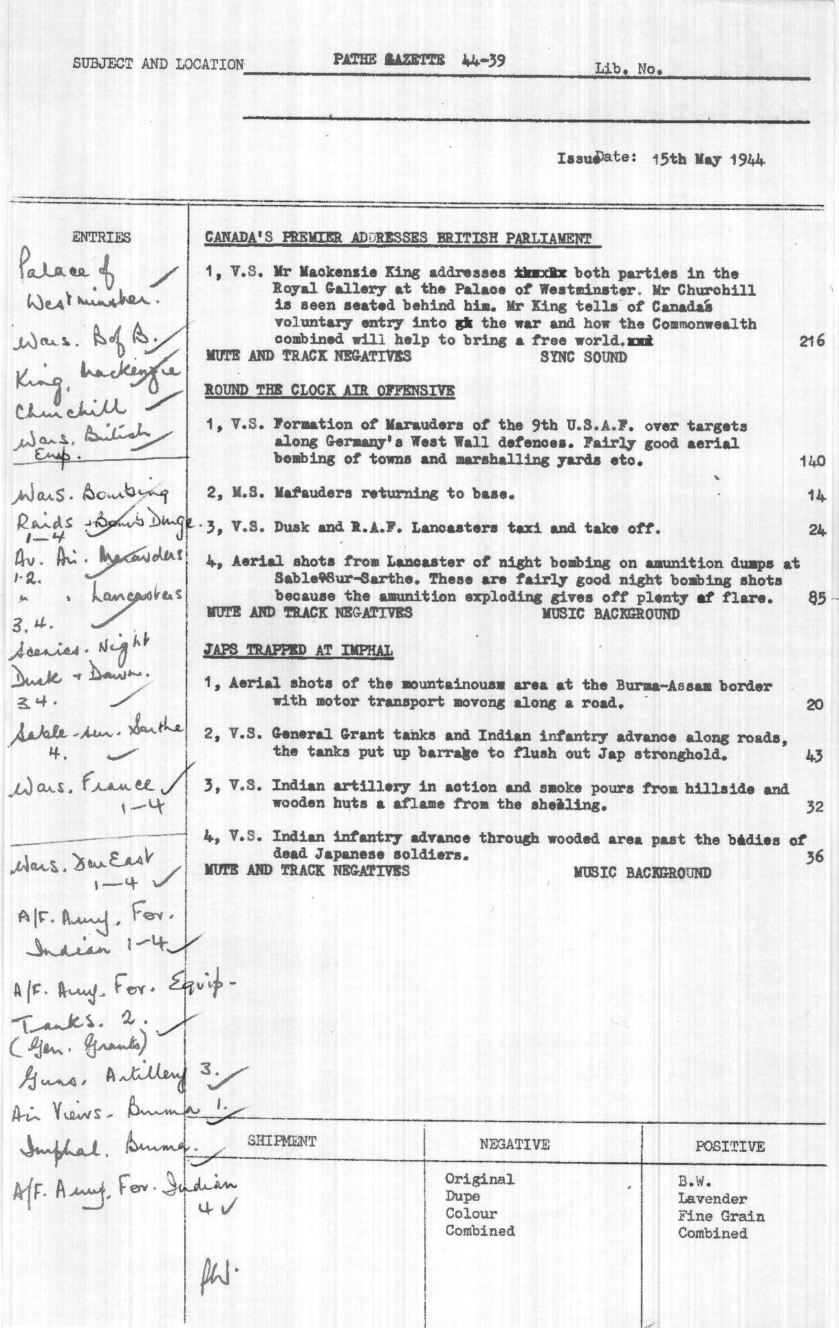Shot List, 'Round the Clock Air Offensive', Pathe Gazette Issue No. 44/39, 15 May 1944. https://learningonscreen.ac.uk/newsonscreen/search/index.php/document/100372_shotlist (Accessed 26 Feb 2026)