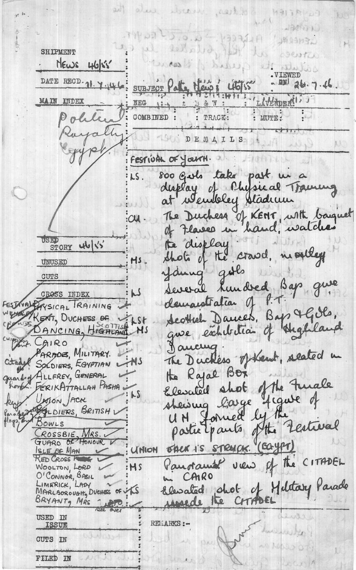 Shot List, 'Seen in Camera', Pathe News Issue No. 46/55, 11 Jul 1946. https://learningonscreen.ac.uk/newsonscreen/search/index.php/document/101199_shotlist (Accessed 13 Apr 2026)