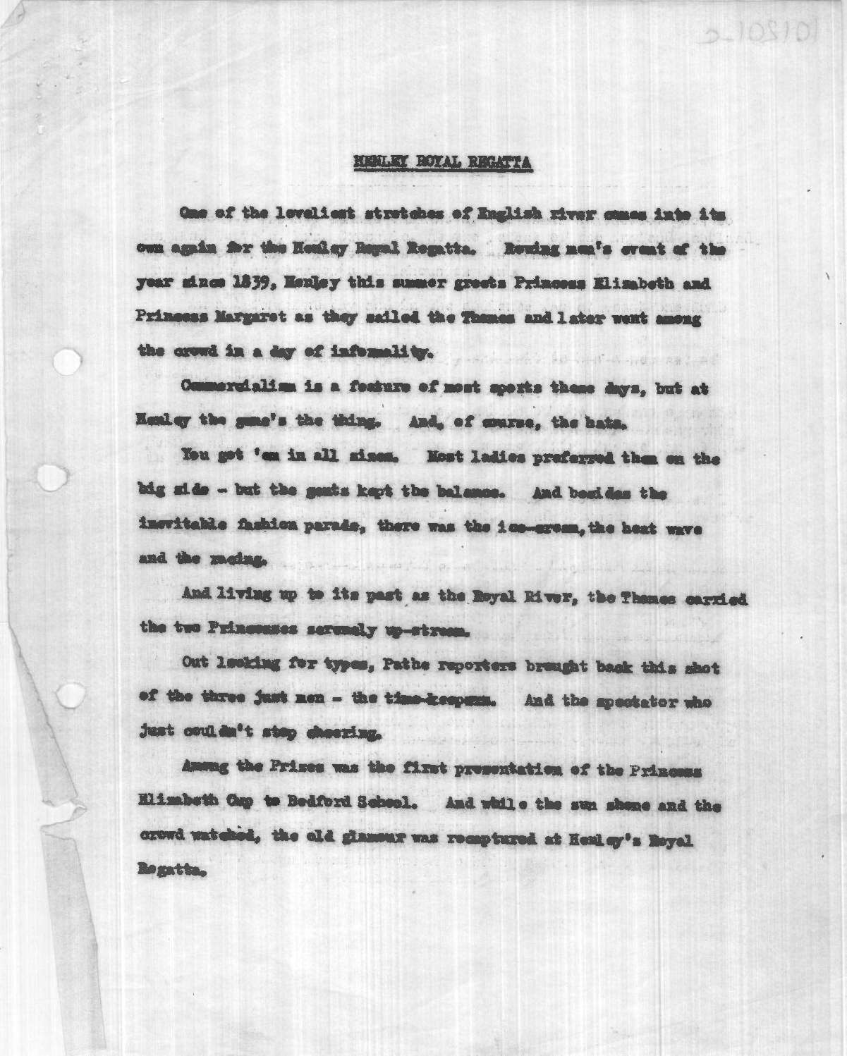 Commentary, 'Henley Royal Regatta', Pathe News Issue No. 46/55, 11 Jul 1946. https://learningonscreen.ac.uk/newsonscreen/search/index.php/document/101201_commentary (Accessed 12 Apr 2026)