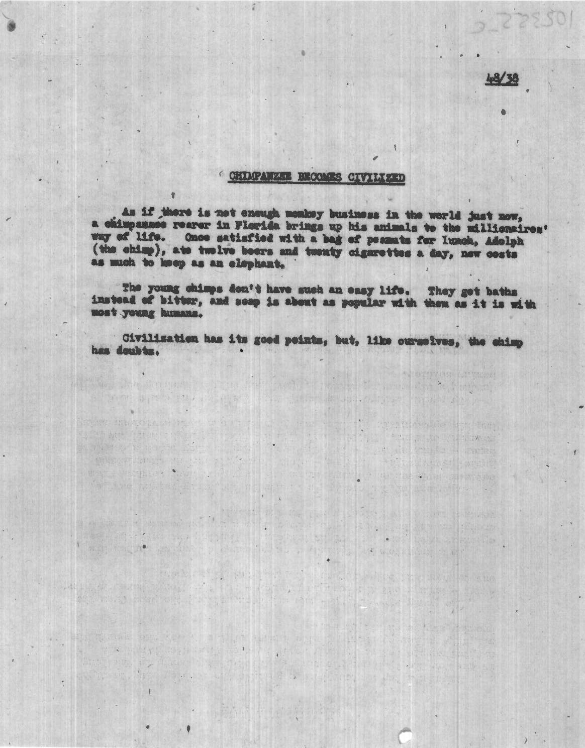Commentary, 'Chimpanzees Become Civilized', Pathe News Issue No. 48/38, 10 May 1948. https://learningonscreen.ac.uk/newsonscreen/search/index.php/document/102355_commentary (Accessed 08 Dec 2025)