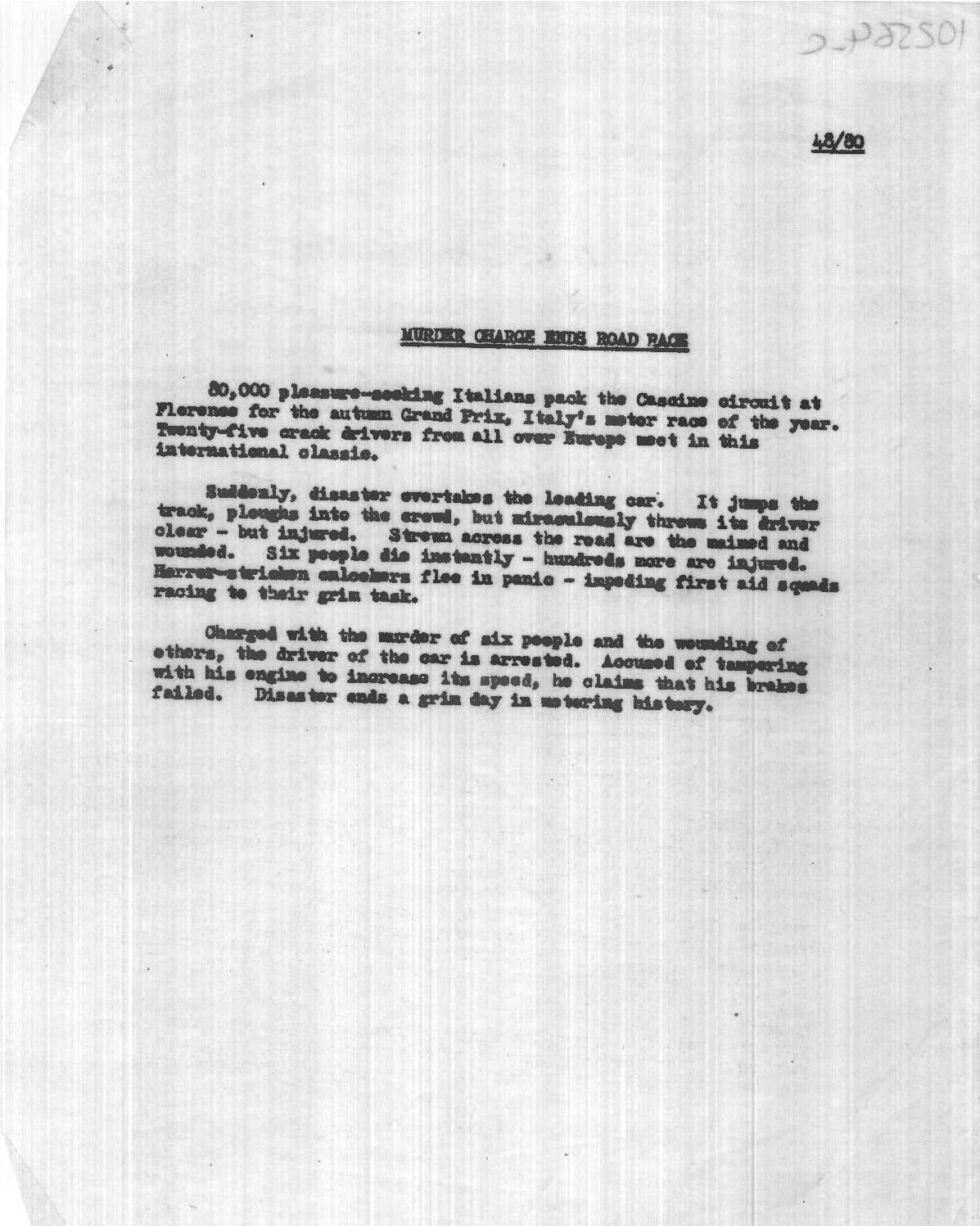 Commentary, 'Murder Charge Ends Road Race', Pathe News Issue No. 48/80, 4 Oct 1948. https://learningonscreen.ac.uk/newsonscreen/search/index.php/document/102564_commentary (Accessed 19 Nov 2025)