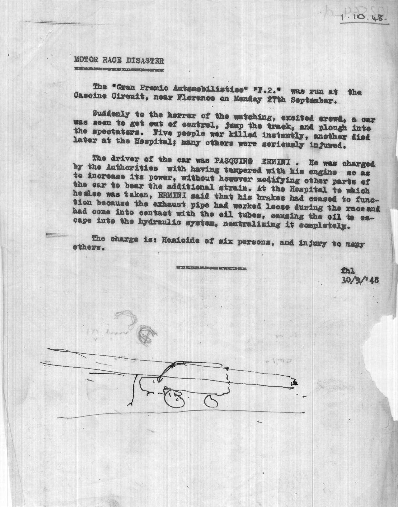 Dope Sheet, 'Murder Charge Ends Road Race', Pathe News Issue No. 48/80, 4 Oct 1948. https://learningonscreen.ac.uk/newsonscreen/search/index.php/document/102564_dope (Accessed 20 Nov 2025)