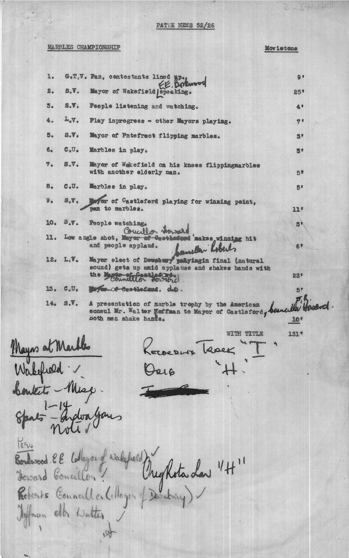 Shot List, 'Mayors at Marbles', Pathe News Issue No. 52/26, 27 Mar 1952. https://learningonscreen.ac.uk/newsonscreen/search/index.php/document/104642_shotlist (Accessed 12 Dec 2025)