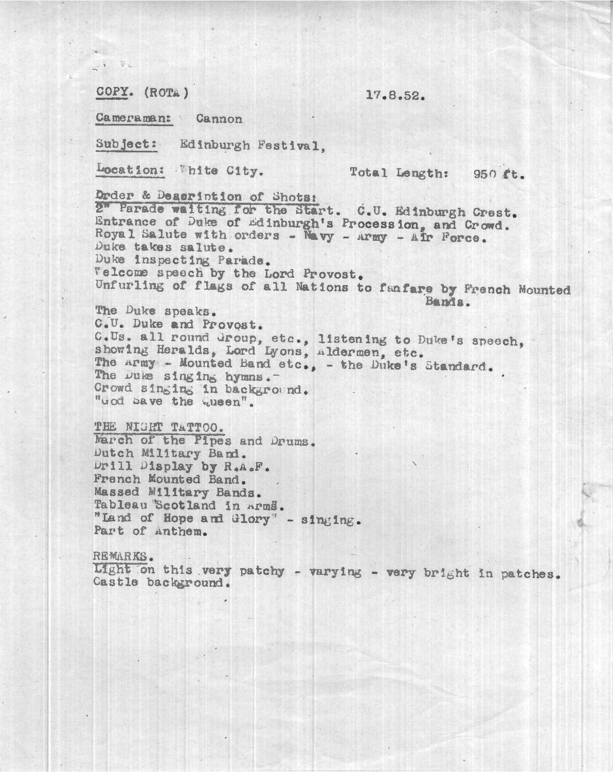 Dope Sheet, 'Edinburgh Festival Opens', Pathe News Issue No. 52/68, 21 Aug 1952. https://learningonscreen.ac.uk/newsonscreen/search/index.php/document/104892_dope (Accessed 27 Dec 2025)