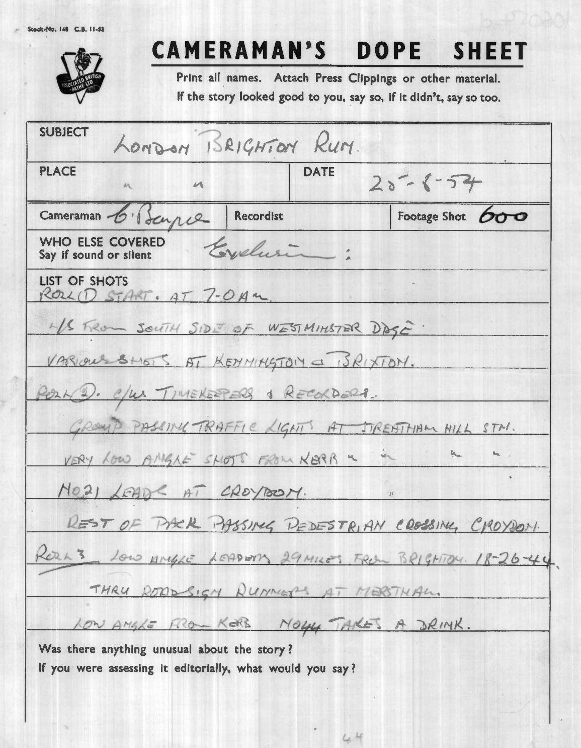 Dope Sheet, 'Bill Kelly Wins Brighton Run', Pathe News Issue No. 54/76, 30 Sep 1954. https://learningonscreen.ac.uk/newsonscreen/search/index.php/document/106054_dope (Accessed 22 Jan 2026)