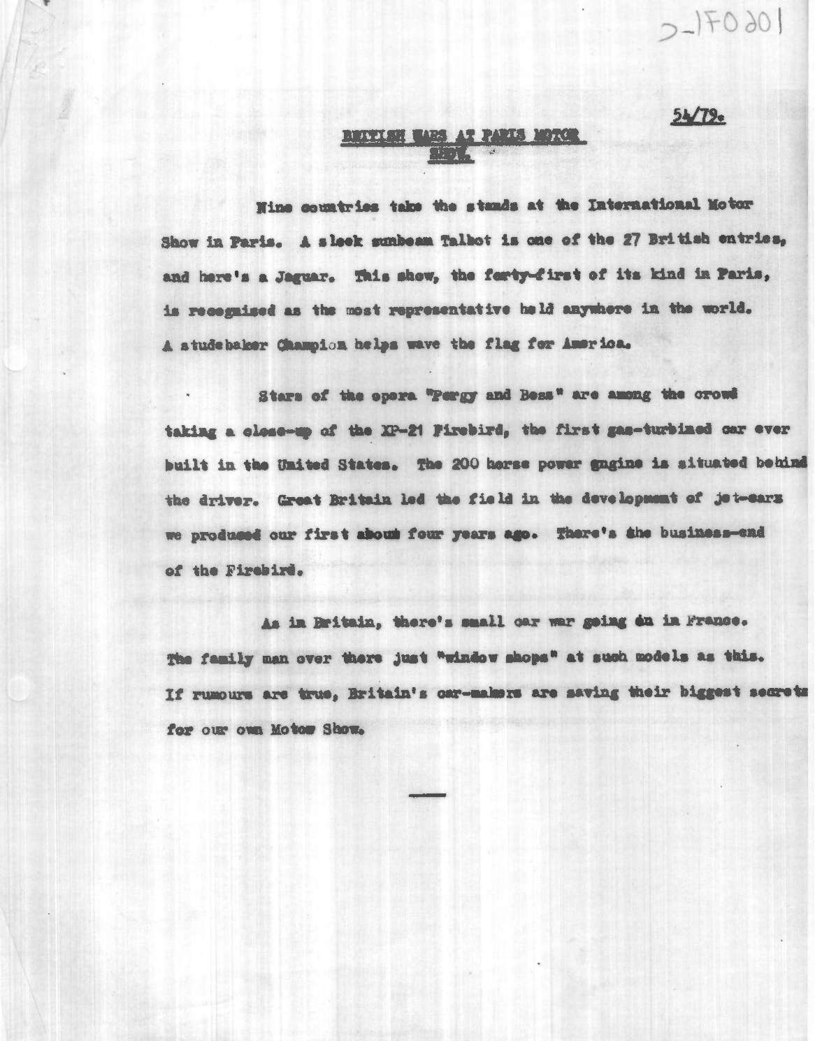 Commentary, 'British Cars At Paris Motor Show', Pathe News Issue No. 54/79, 11 Oct 1954. https://learningonscreen.ac.uk/newsonscreen/search/index.php/document/106071_commentary (Accessed 20 Mar 2026)