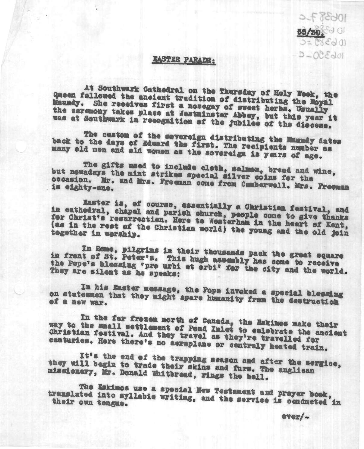 Commentary, 'Easter Parade: Easter in the Canadian Arctic', Pathe News Issue No. 55/30, 14 Apr 1955. https://learningonscreen.ac.uk/newsonscreen/search/index.php/document/106390_commentary (Accessed 15 Nov 2025)