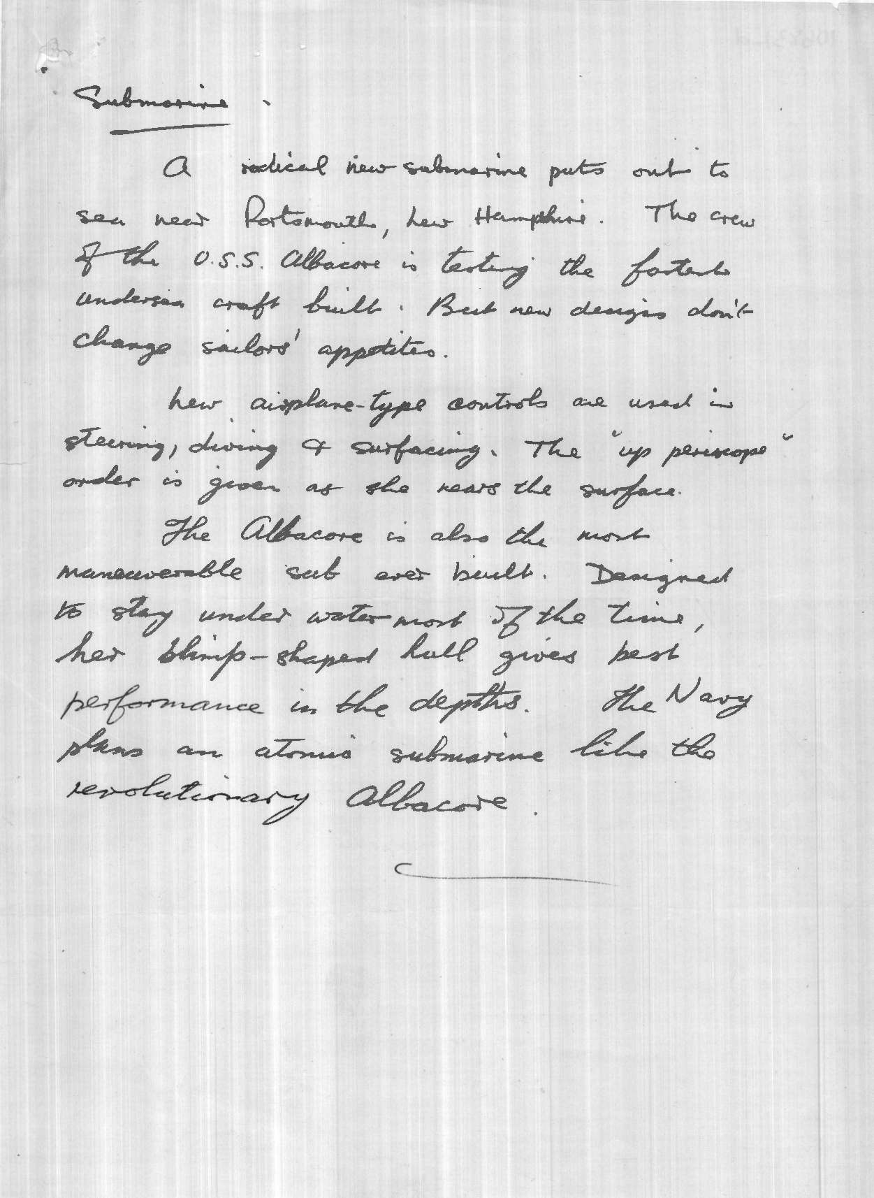 Dope Sheet, 'Aquabatic Sub', Pathe News Issue No. 55/102, 22 Dec 1955. https://learningonscreen.ac.uk/newsonscreen/search/index.php/document/106831_dope (Accessed 11 Apr 2026)