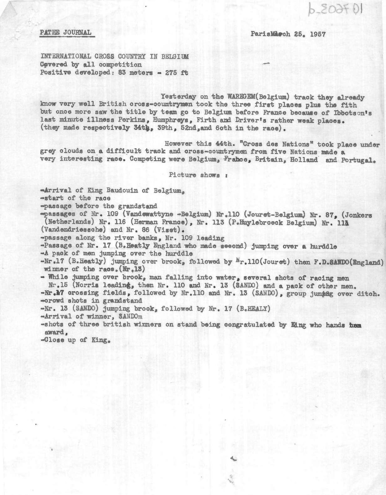 Dope Sheet, 'Cross Country Triumph', Pathe News Issue No. 57/26, 28 Mar 1957. https://learningonscreen.ac.uk/newsonscreen/search/index.php/document/107603_dope (Accessed 21 Dec 2025)