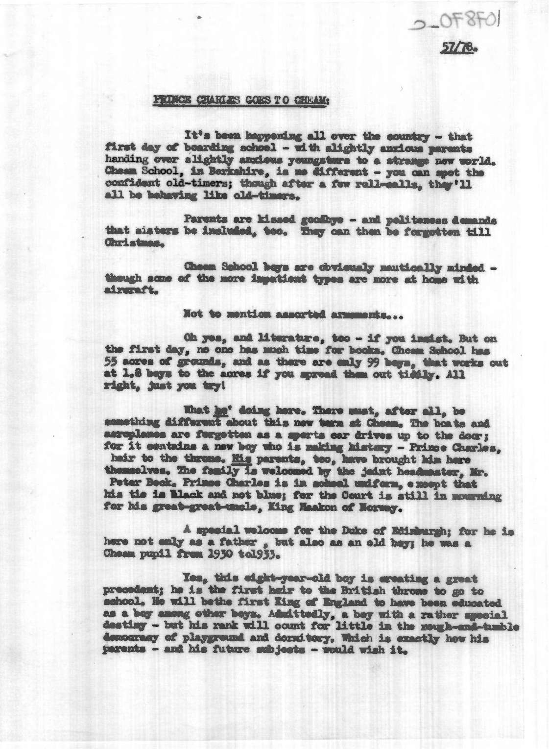 Commentary, 'New Boy at Cheam', Pathe News Issue No. 57/78, 26 Sep 1957. https://learningonscreen.ac.uk/newsonscreen/search/index.php/document/107870_commentary (Accessed 30 Apr 2026)