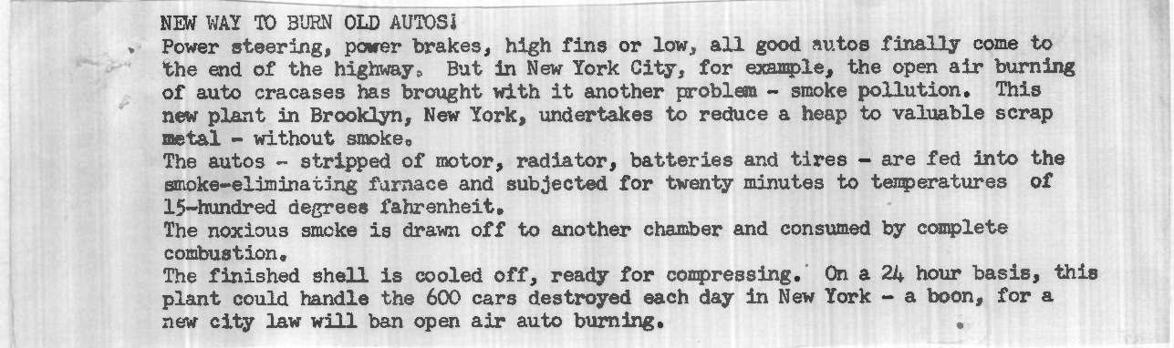 Dope Sheet, 'Old Cars Burn Up - New York', Pathe News Issue No. 58/97, 4 Dec 1958. https://learningonscreen.ac.uk/newsonscreen/search/index.php/document/108418_dope (Accessed 13 Apr 2026)
