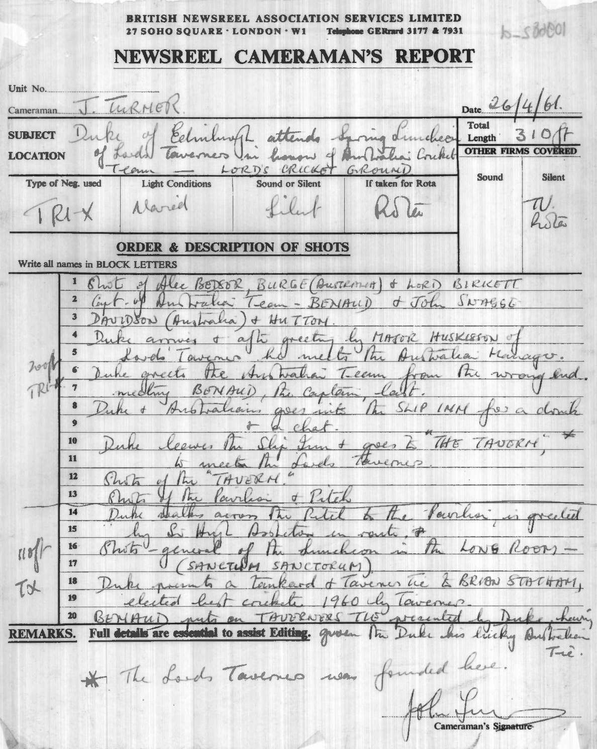 Dope Sheet, 'Duke Meets Aussies', Pathe News Issue No. 61/35, 1 May 1961. https://learningonscreen.ac.uk/newsonscreen/search/index.php/document/109682_dope (Accessed 01 Apr 2026)