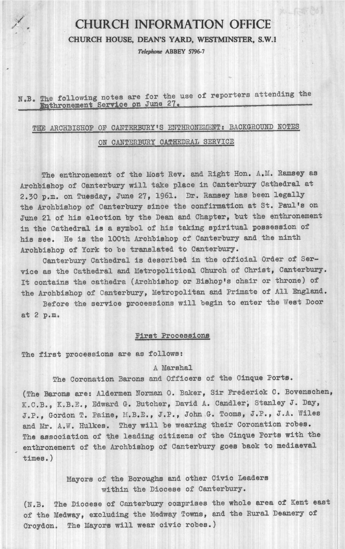 Ephemera, 'Archbishop Enthroned', Pathe News Issue No. 61/52, 29 Jun 1961. https://learningonscreen.ac.uk/newsonscreen/search/index.php/document/109751_other (Accessed 19 Jan 2026)