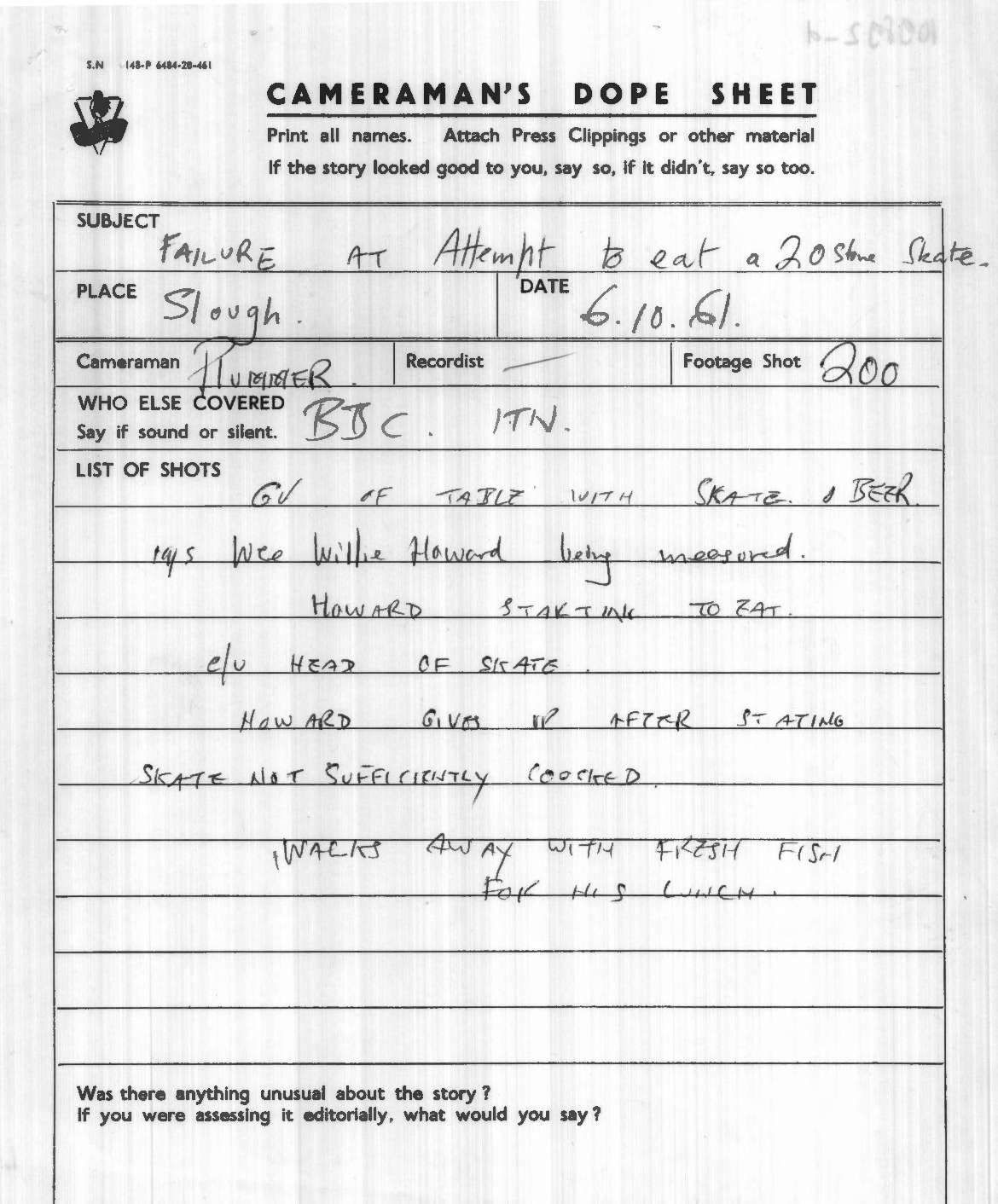 Dope Sheet, 'Fish Beats Big Eater', Pathe News Issue No. 61/82, 12 Oct 1961. https://learningonscreen.ac.uk/newsonscreen/search/index.php/document/109892_dope (Accessed 18 Jan 2026)