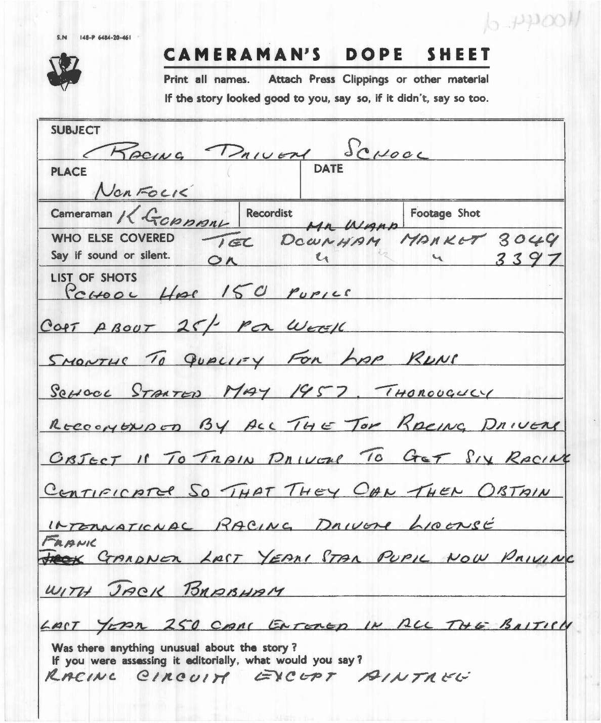 Dope Sheet, 'Car Racing’s Next Stars', Pathe News Issue No. 62/12, 8 Feb 1962. https://learningonscreen.ac.uk/newsonscreen/search/index.php/document/110044_dope (Accessed 01 Mar 2026)
