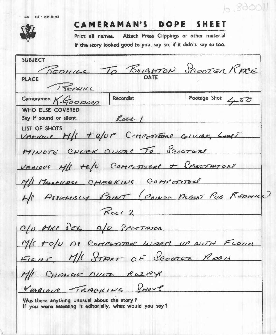 Dope Sheet, 'Scooters to Brighton', Pathe News Issue No. 62/16, 22 Feb 1962. https://learningonscreen.ac.uk/newsonscreen/search/index.php/document/110068_dope (Accessed 18 Jan 2026)