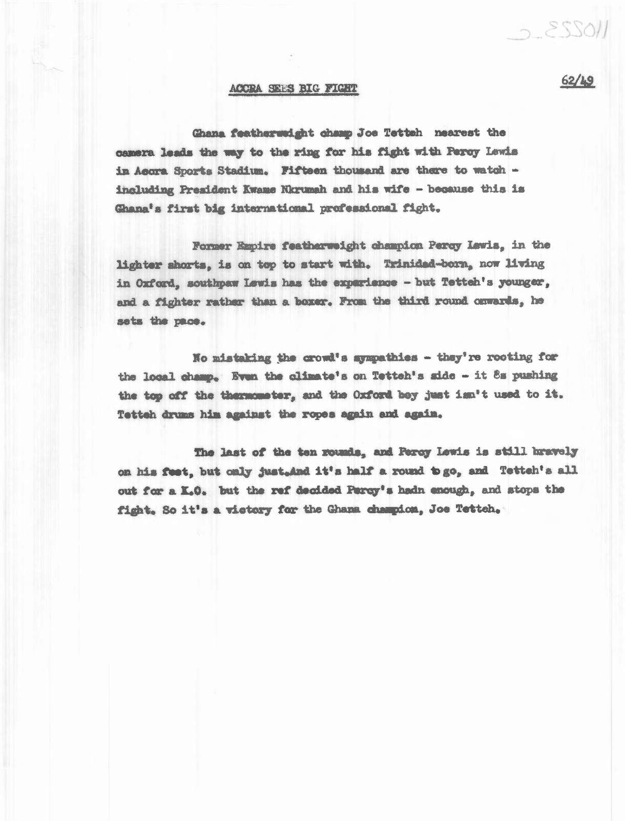 Commentary, 'Accra Sees Big Fight', Pathe News Issue No. 62/49, 18 Jun 1962. https://learningonscreen.ac.uk/newsonscreen/search/index.php/document/110223_commentary (Accessed 19 Feb 2026)