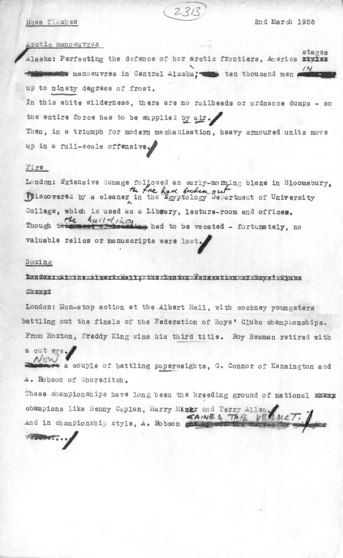 Commentary, 'London: Fire', Gaumont British News Issue No. 2313, 5 Mar 1956. https://learningonscreen.ac.uk/newsonscreen/search/index.php/document/156946_commentary (Accessed 11 Mar 2026)