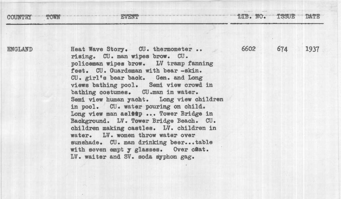 Shot List, 'Sh! [Sic] It’s Summer! Hot Ideas for Keeping Cool', British Paramount News Issue No. 674, 12 Aug 1937. https://learningonscreen.ac.uk/newsonscreen/search/index.php/document/35364_shotlist (Accessed 30 Mar 2026)