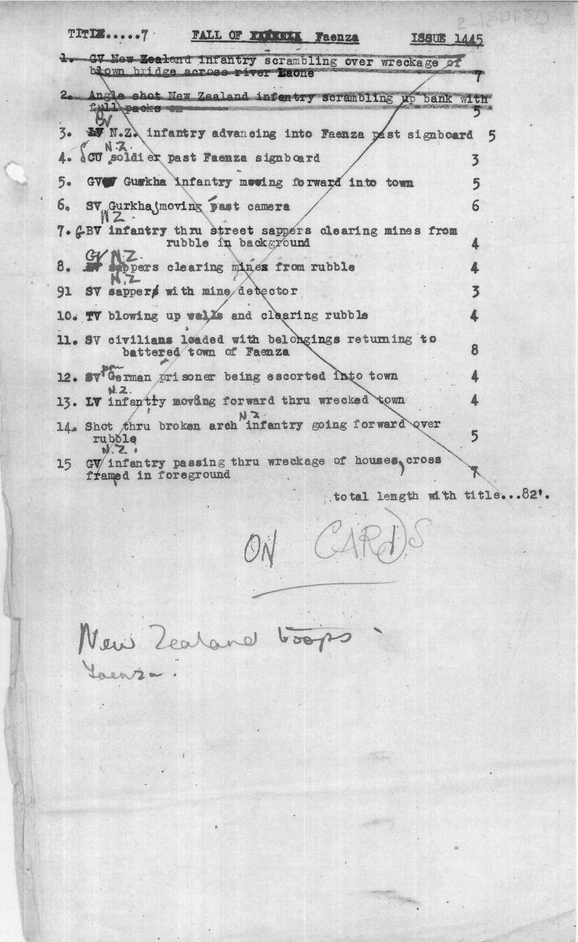 Shot List - Eighth Army Takes Faenza