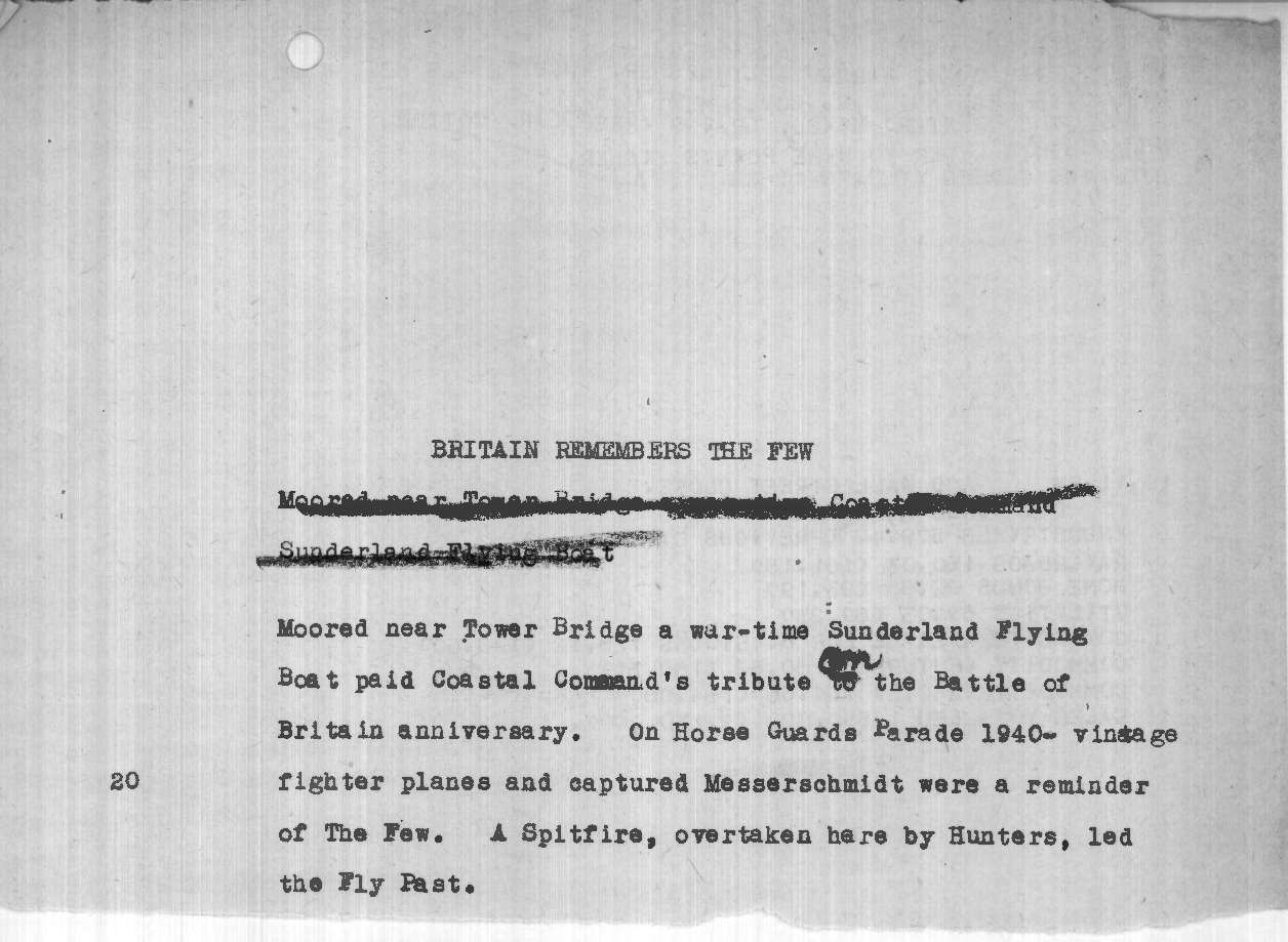 Commentary, 'British Remembers the Few', British Paramount News Issue No. 2666, 17 Sep 1956. https://learningonscreen.ac.uk/newsonscreen/search/index.php/document/46854_commentary (Accessed 29 Dec 2025)