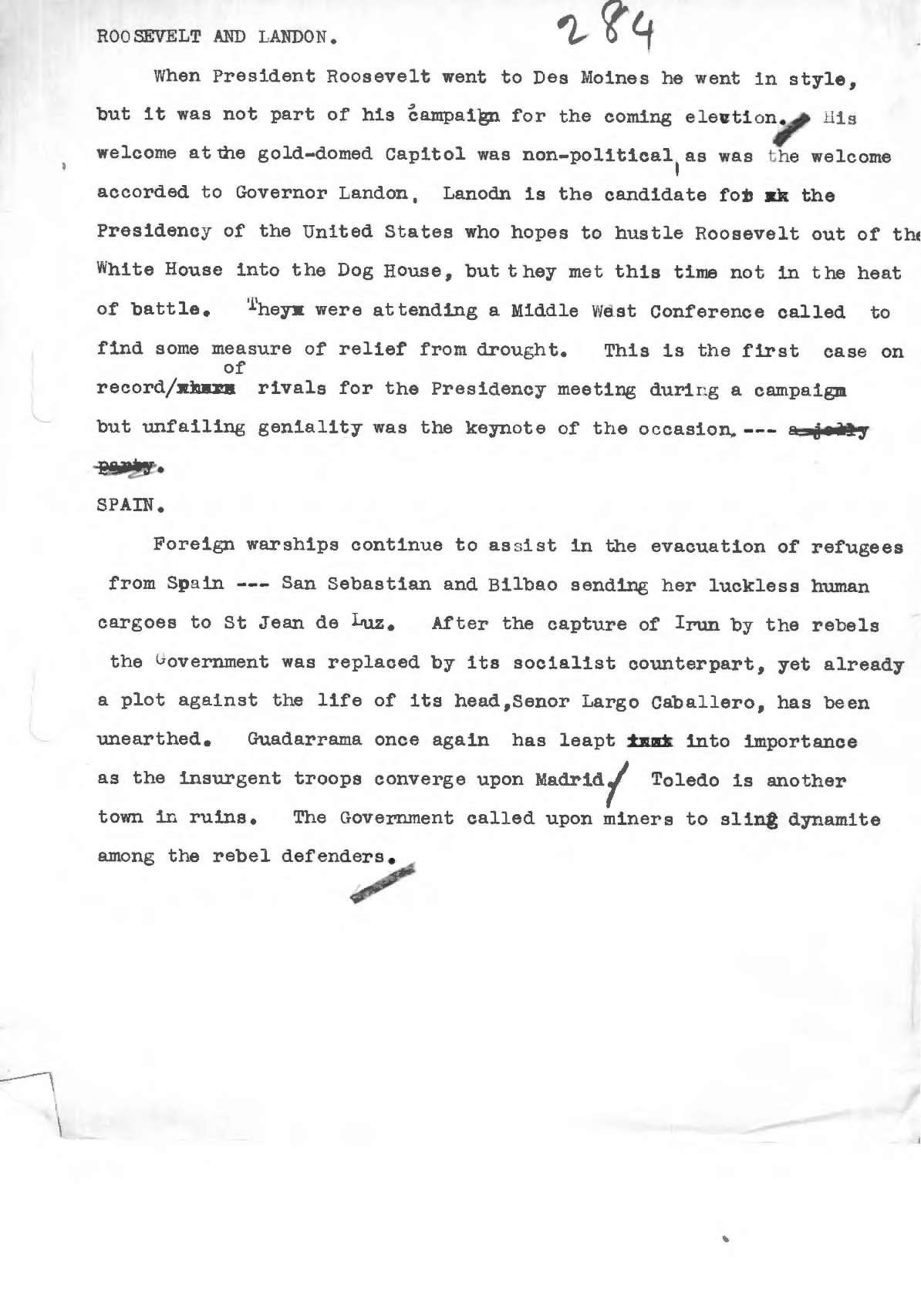 Commentary - President Roosevelt and Governor Landon Meet at Drought Relief Conference