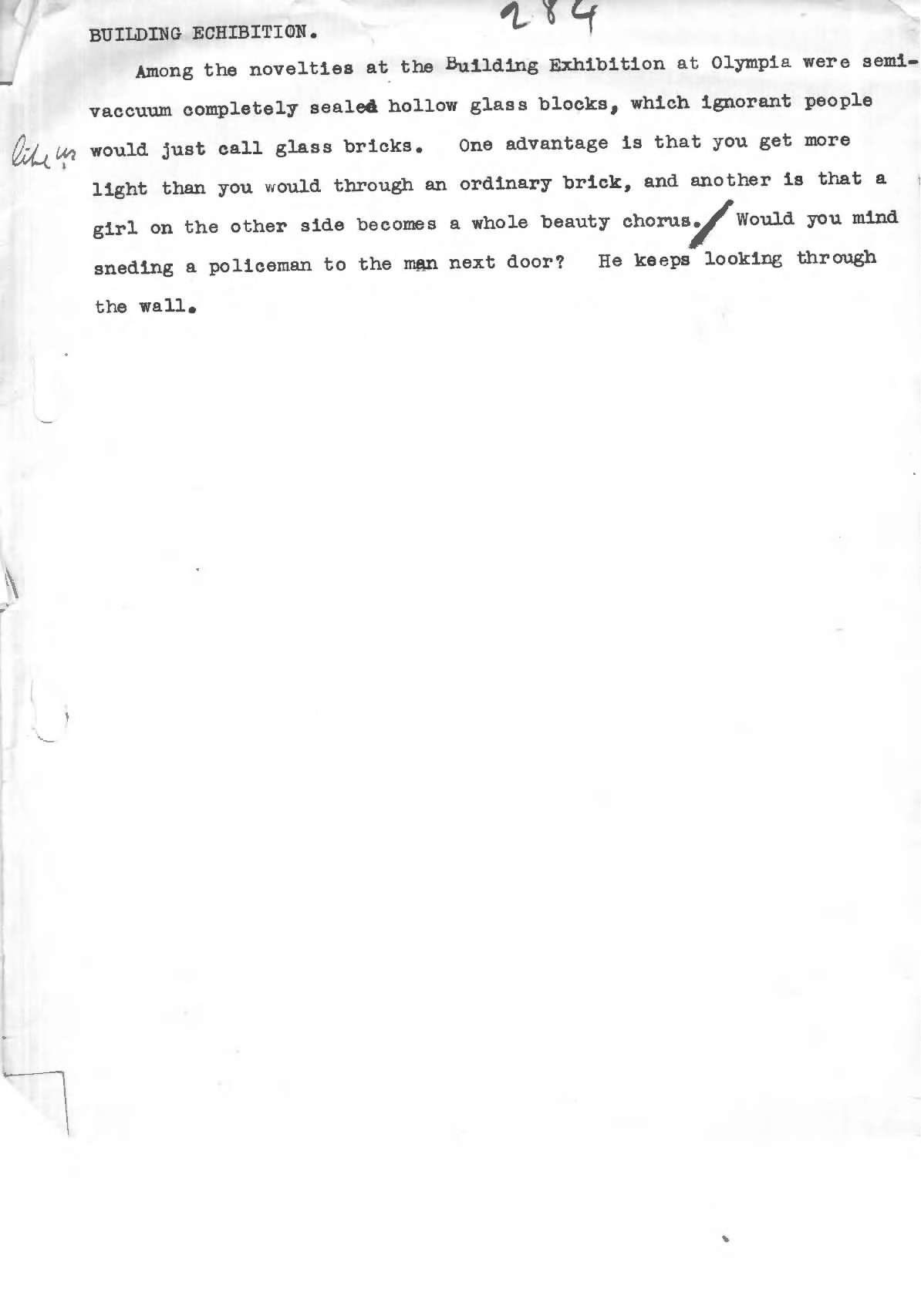 Commentary - Roving Camera Reports: Glass Bricks at Olympia Building Exhibition