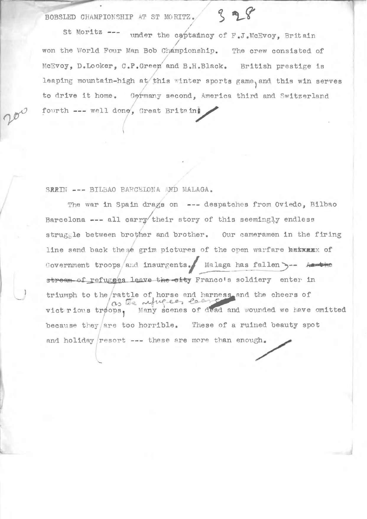 Commentary - Spanish Civil War Drags on - Insurgents Enter Malaga