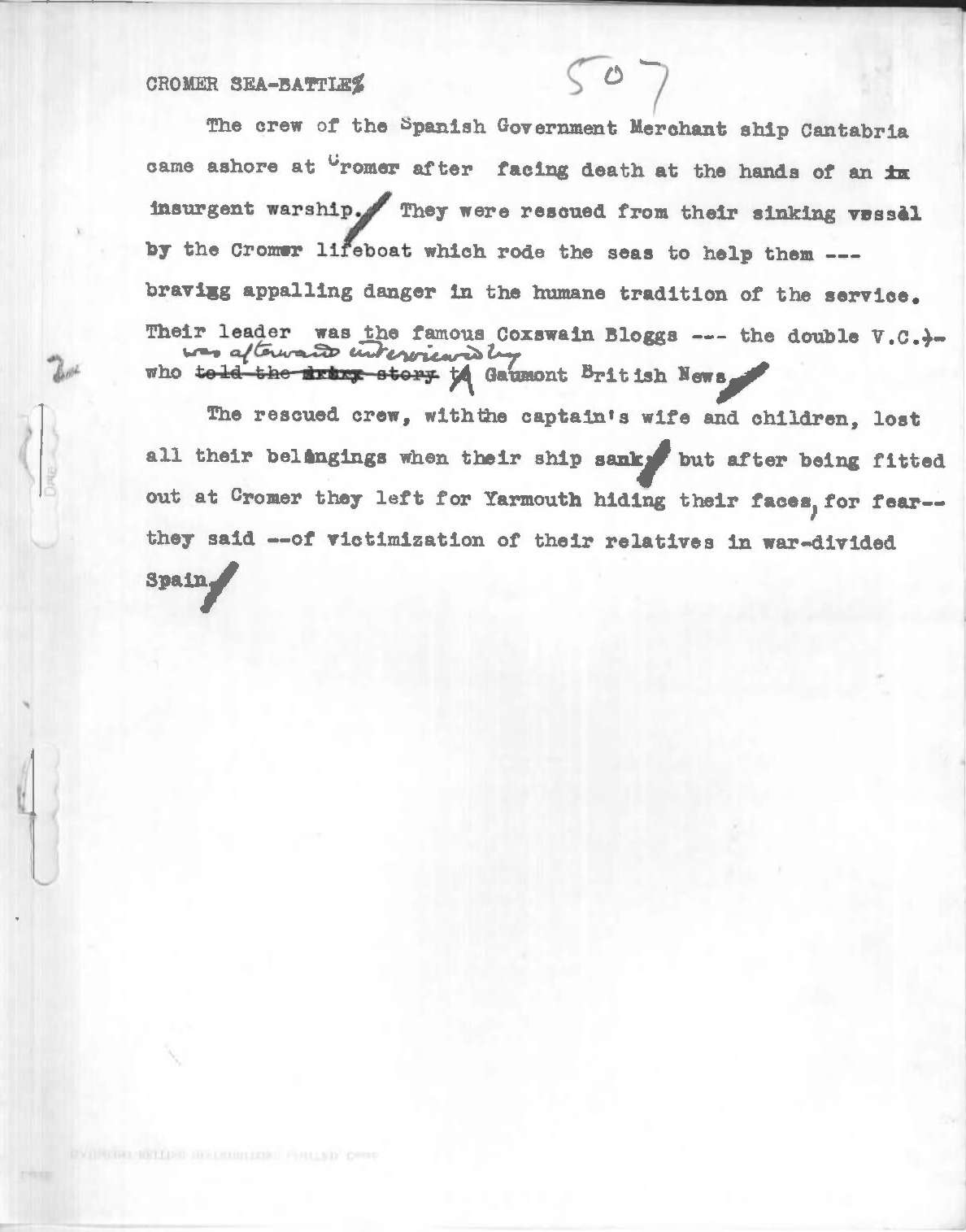 Commentary, 'Rescued Crew of the Sunk "Cantabria" at Cromer', Gaumont British News Issue No. 507, 7 Nov 1938. https://learningonscreen.ac.uk/newsonscreen/search/index.php/document/58366_commentary (Accessed 06 Apr 2026)