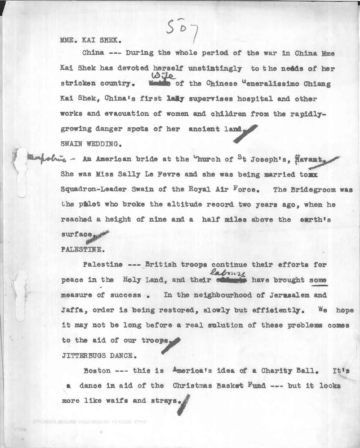 Commentary, 'Roving Camera Reports: Squadron Leader Swain Marries', Gaumont British News Issue No. 507, 7 Nov 1938. https://learningonscreen.ac.uk/newsonscreen/search/index.php/document/58368_commentary (Accessed 04 Oct 2025)