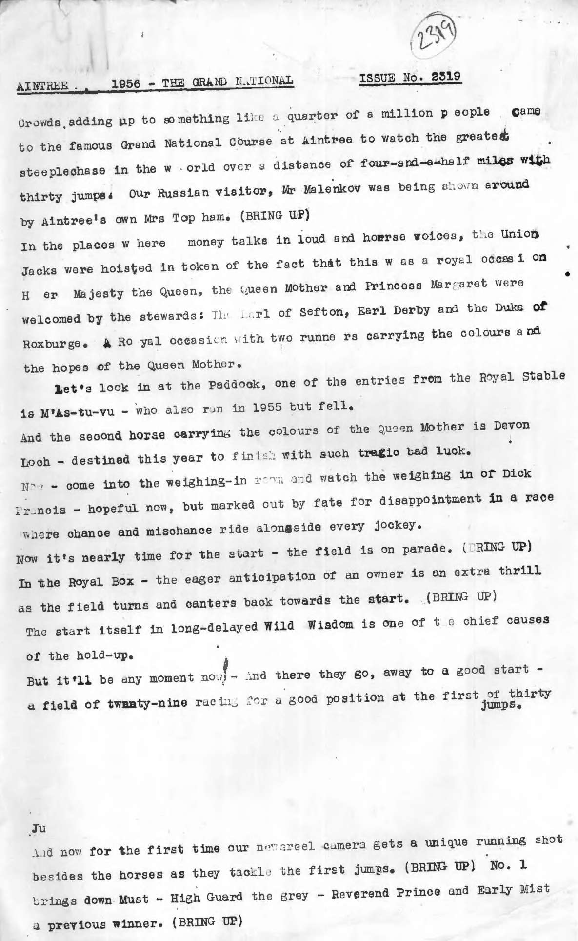 Commentary, 'Aintree 1956', Gaumont British News Issue No. 2319, 26 Mar 1956. https://learningonscreen.ac.uk/newsonscreen/search/index.php/document/73237_commentary (Accessed 21 Feb 2026)