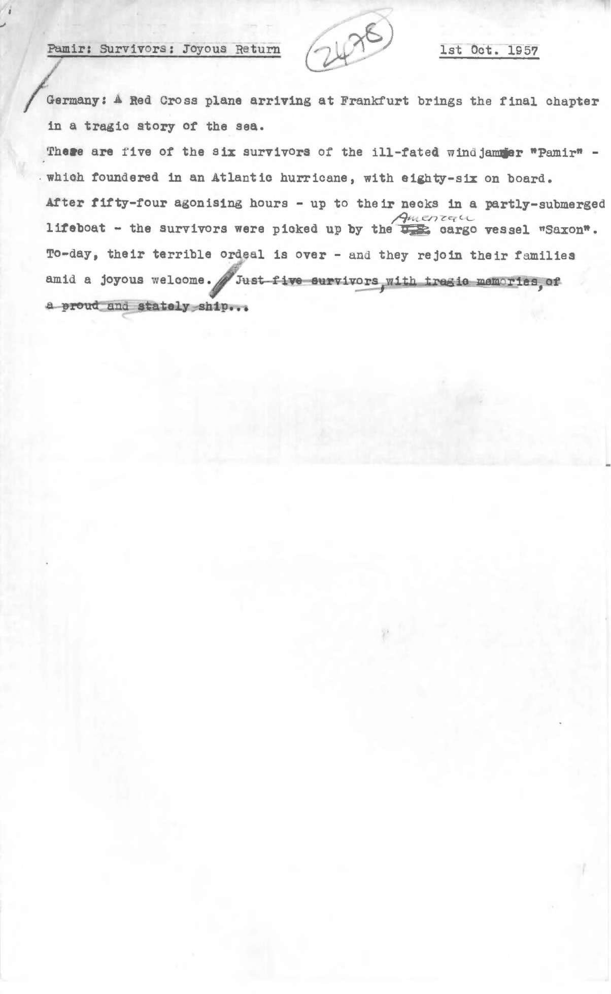 Commentary, 'Germany: "Pamir" Survivors Joyous Return', Gaumont British News Issue No. 2478, 3 Oct 1957. https://learningonscreen.ac.uk/newsonscreen/search/index.php/document/74504_commentary (Accessed 03 Mar 2026)