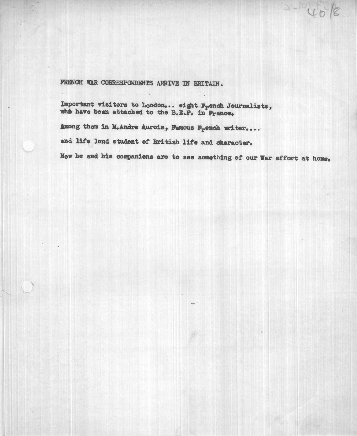 Commentary - French War Correspondents Arrive in Britain