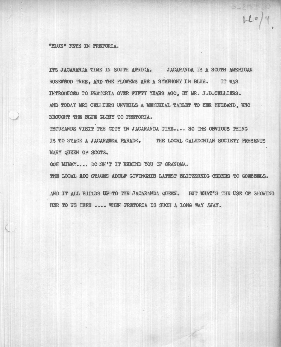 Commentary, 'Blue Fete in Pretoria', Pathe Gazette Issue No. 40/9, 29 Jan 1940. https://learningonscreen.ac.uk/newsonscreen/search/index.php/document/97713_commentary (Accessed 20 Dec 2025)