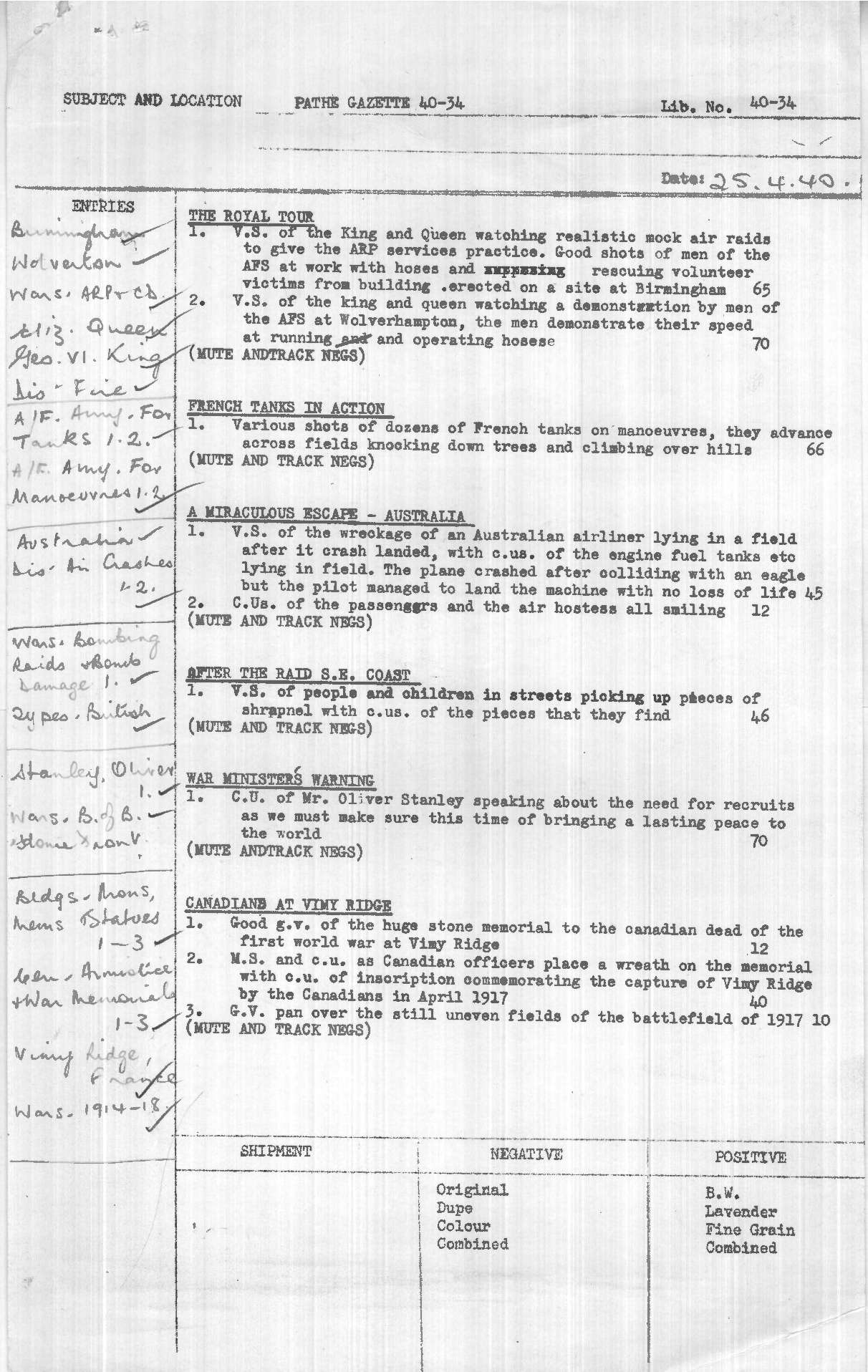 Shot List, 'French Tanks in Action', Pathe Gazette Issue No. 40/34, 25 Apr 1940. https://learningonscreen.ac.uk/newsonscreen/search/index.php/document/97900_shotlist (Accessed 23 Oct 2025)