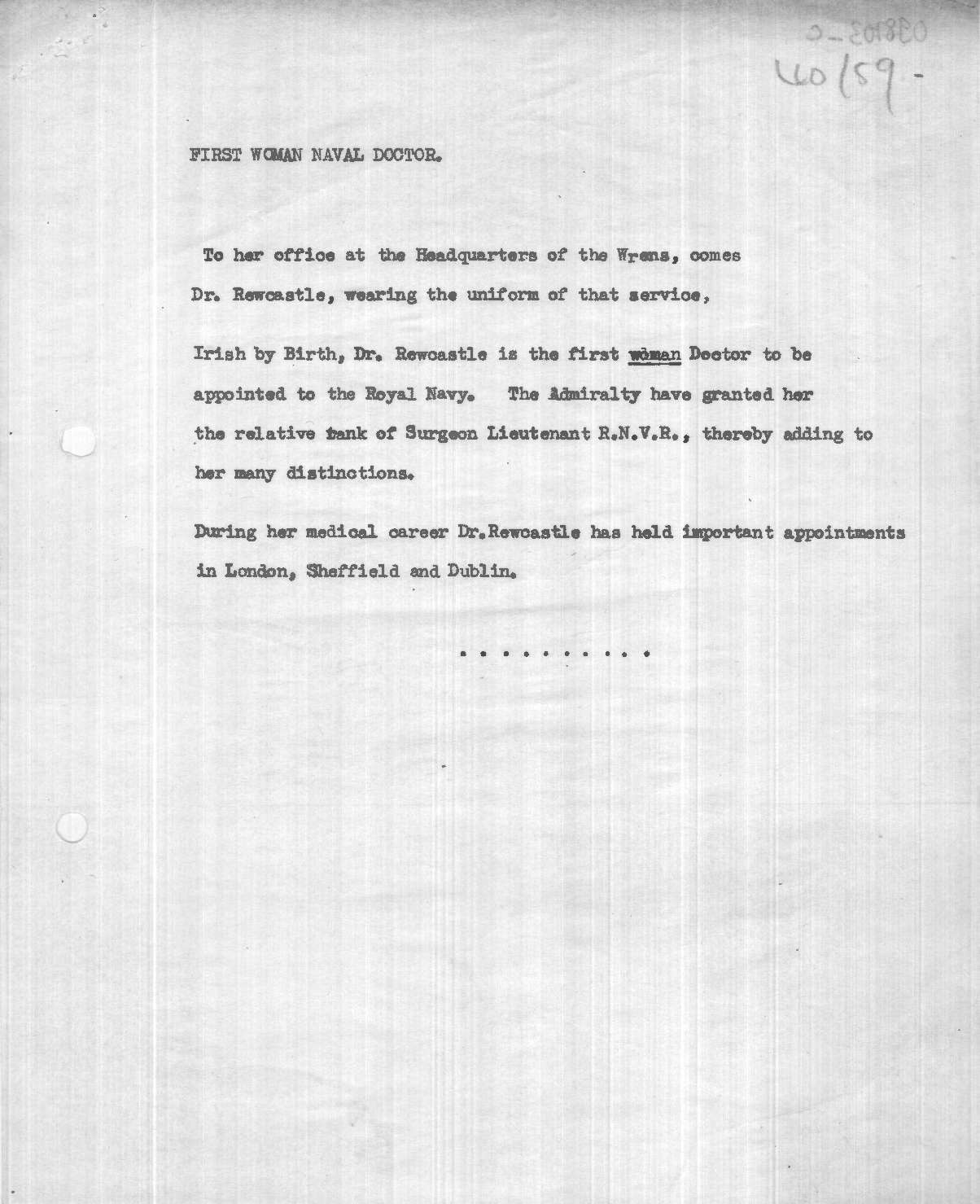 Commentary, 'First Woman Naval Doctor', Pathe Gazette Issue No. 40/59, 22 Jul 1940. https://learningonscreen.ac.uk/newsonscreen/search/index.php/document/98103_commentary (Accessed 12 Nov 2025)