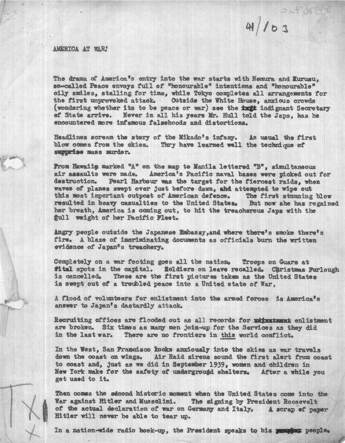 Commentary, 'America at War', Pathe Gazette Issue No. 41/103, 25 Dec 1941. https://learningonscreen.ac.uk/newsonscreen/search/index.php/document/99207_commentary (Accessed 26 Oct 2025)