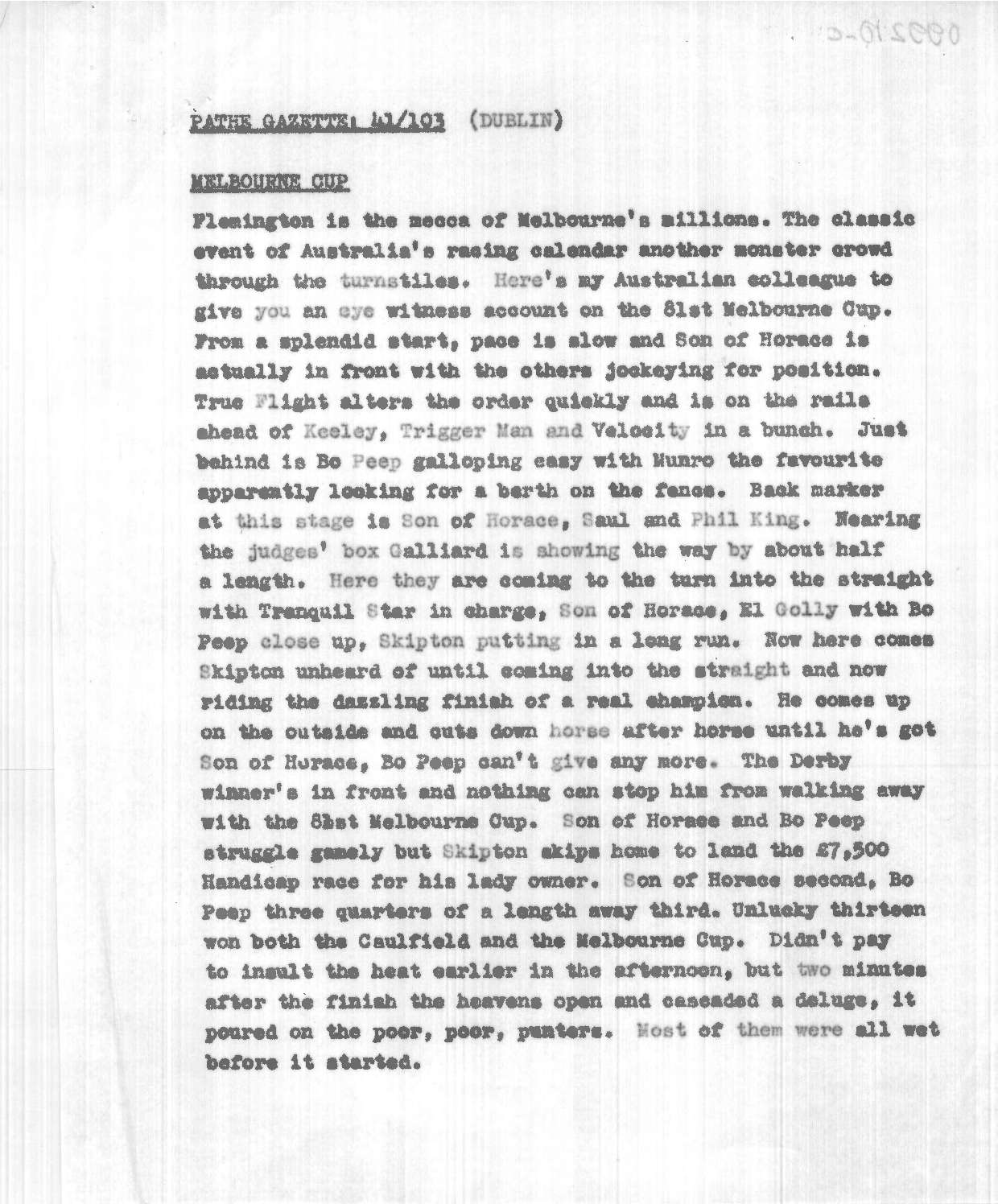 Commentary, 'Melbourne Cup', Pathe Gazette Issue No. 41/103, 25 Dec 1941. https://learningonscreen.ac.uk/newsonscreen/search/index.php/document/99210_commentary (Accessed 25 Oct 2025)