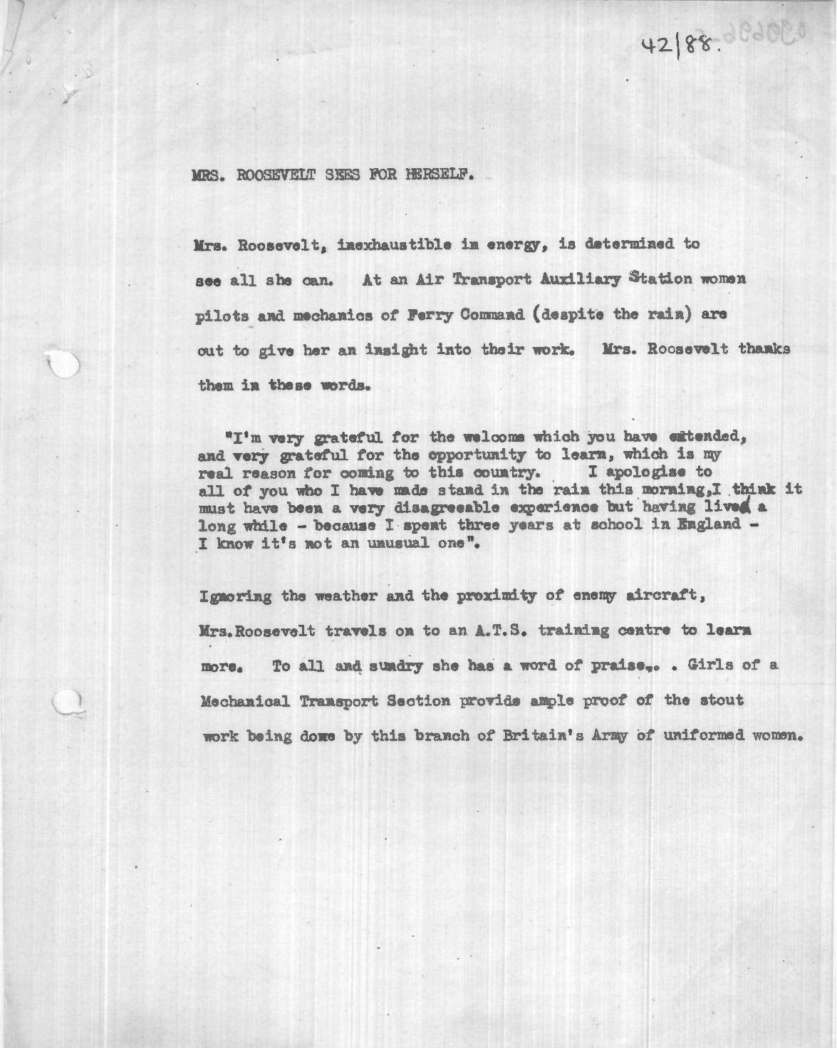 Commentary, 'Mrs Roosevelt Sees for Herself', Pathe Gazette Issue No. 42/88, 2 Nov 1942. https://learningonscreen.ac.uk/newsonscreen/search/index.php/document/99696_commentary (Accessed 24 Mar 2026)